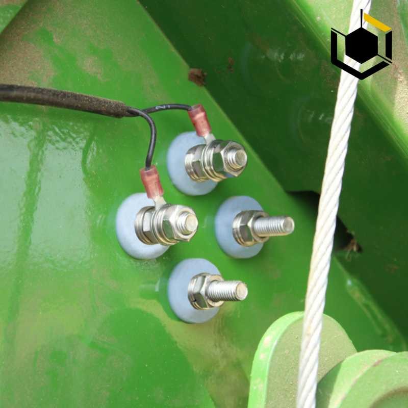Le capteur se place dans le tiers inférieur, sur une paroi latérale de la chambre de pressage ou sur une paroi du hayon pour une presse à balle ronde. Pour une presse à balles carrées, placer le capteur à mi-hauteur sur une paroi latérale et à environ 50 cm avant la fin du canal de pressage.