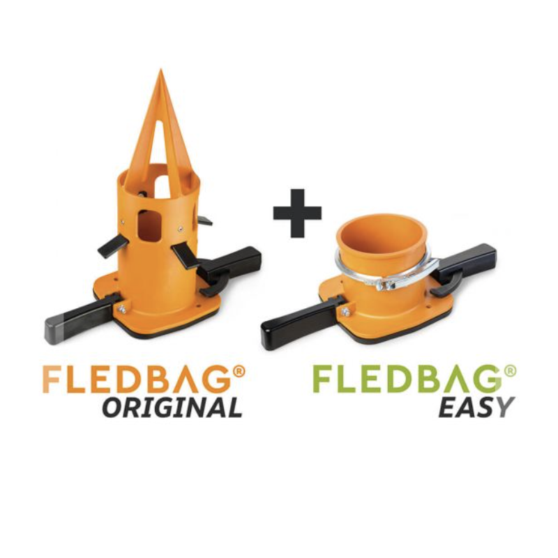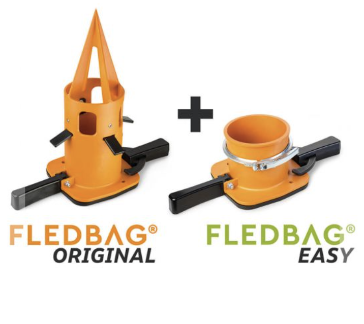 Kit contenant un FLEDBAG Easy et un FLEDBAG Original, adapté pour les fermes qui utilisent des big-bags à usage unique et réutilisables.