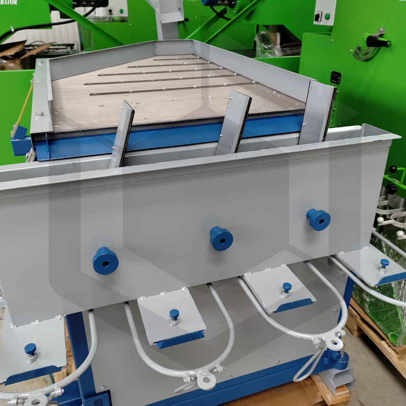 Le bon fonctionnement de cet appareil est obtenu avec le débit des grains, la vitesse de vibration, l’inclinaison longitudinale et latérale de la table et la puissance de la soufflerie.