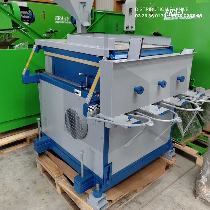 La table densimétrique RDS est livrée avec son double chassis, une trémie, tablier avec maille 0.8mm et 4 ses sorties de grain, boitier de commande équipé d'un variateur de fréquence et alimentation triphasé avec prix 16A 5 poles FR
