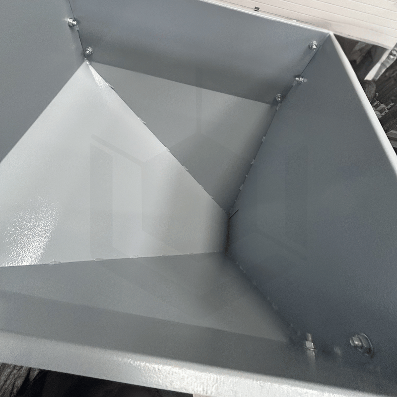 Trémie destinée à l’utilisation d’un épierreur DKM16-G3, pouvant également être intégrée à différentes installations au sein d’une unité de stockage à la ferme.