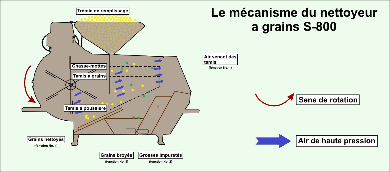 Sa capacité de nettoyage pour le blé est de 800 à 1500 kg par heure!