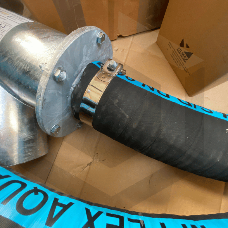 • Une spire métallique intégrée dans un tuyau en caoutchouc souple, permettant un convoyage fluide.