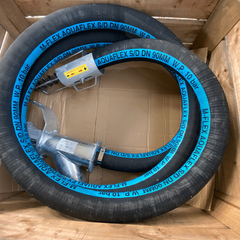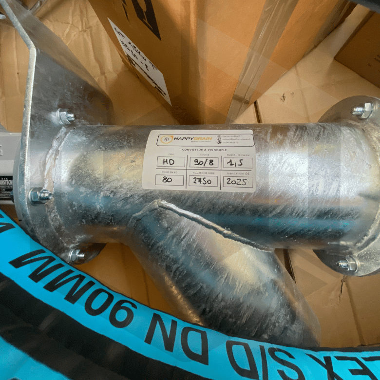 - Une spire métallique intégrée dans un tuyau en caoutchouc souple, permettant un convoyage fluide.