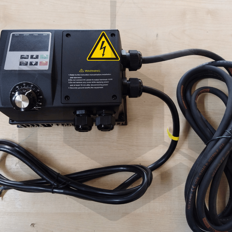 - Alimentation monophasée 230V (boîtier ou variateur)