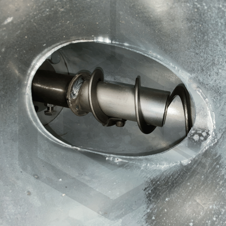 Le produit à transporter est introduit dans l’entrée de la vis, puis la spirale le pousse progressivement le long du tube jusqu’à la sortie. Ce système assure un convoyage continu et régulier tout en limitant les chocs sur les grains.