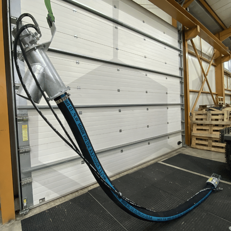 La vis souple hydraulique HD76-H fonctionne grâce à une spirale entraînée par un moteur hydraulique. Cette spirale tourne à l’intérieur d’un tuyau flexible en caoutchouc naturel résistant à l’abrasion.